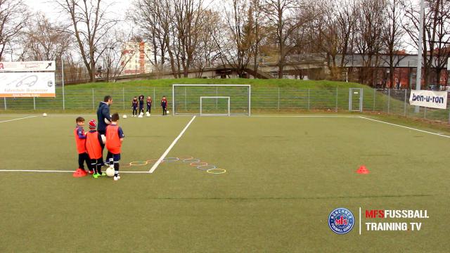 In dieser Übung trainieren die Spieler Frequenzschnelligkeit, Rhythmusfähigkeit und Schnellkraft.