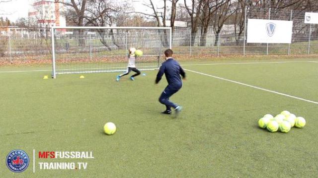 In dieser Übung trainieren wir die Reaktionsfähigkeit des Torhüters.